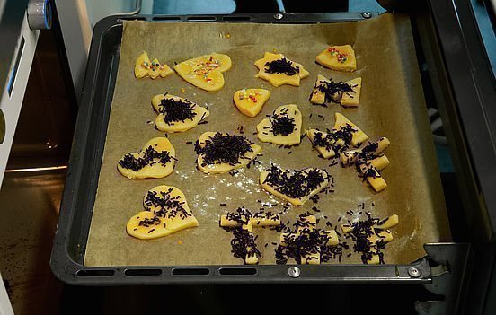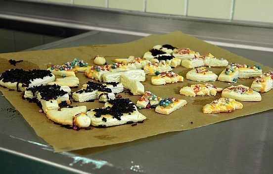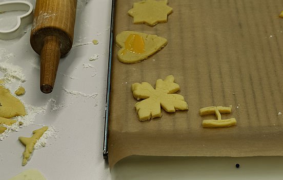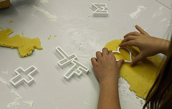 In der Folgestunde backte die Klasse dann mit den eigenen Formen Ausstecherle: Teig machen, ausrollen, stechen und ab in den Ofen: Stolz konnten die Jugendlichen dann ihr eigens kreiertes Gebäck mit nach Hause nehmen – oder direkt verspeisen.