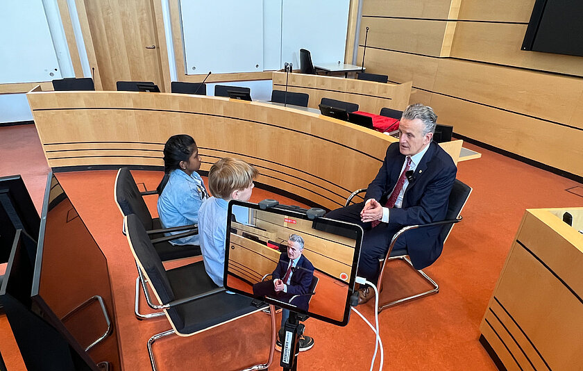 Kinderreporter/-innen der GWRS Ostheim interviewen Oberbügermeister Dr. Frank Nopper