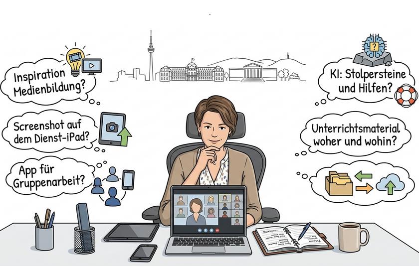Sie wissen nicht genau, wie man einen Screenshot auf dem Dienst-iPad erstellt? Sie suchen nach einer passenden App für die nächste Gruppenarbeit? Oder Sie haben bereits einige Versuche mit Künstlicher Intelligenz (KI) gemacht, aber stoßen nun auf unerwartete Stolpersteine und etwas funktioniert nicht so, wie Sie es sich vorgestellt haben? Ihnen fehlen Inspiration und passendes Unterrichtsmaterial für eine qualitativ hochwertige Medienbildung Ihrer Schülerinnen und Schüler? Genau dafür sind wir da.