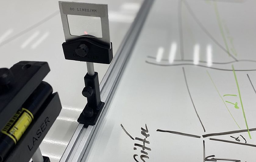 Am Ende der Veranstaltung nimmt jede/-r Teilnehmende eine vollständige Optikbank inklusive Laserpointer und Doppelspalt mit nach Hause.