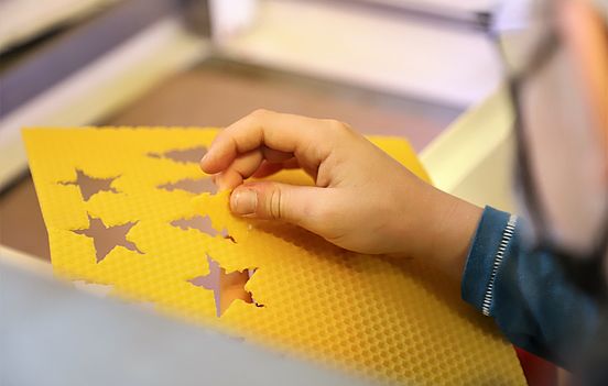 In knapp dreieinhalb Stunden entstanden dabei drei kurze Trickfilme, Schlüsselanhänger mit Logo, komplexe Parcours für unsere kleinen BlueBots und selbstgestaltete Kerzen für die Weihnachtszeit. Ein spannender und spaßiger Vormittag für alle Beteiligten mit iPad, Cobo-Stories, 3D-Drucker, Lasercutter und Roboterkäfern.