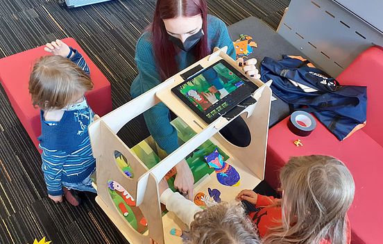 Am 9. November 2021 war es endlich so weit; Zehn Schülerinnen und Schüler der Element-i Grundschule im STEP besuchten im Rahmen des Forscher- und Tüftler/-innentages mit ihren beiden Lehrerinnen das Stadtmedienzentrum und durften sich als kreative Gestalter/-innen, Programmierer/-innen und Konstruierer/-innen ausprobieren.
