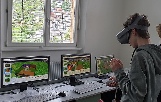 Virtual Reality ist eine Technologie, die es Lernenden ermöglicht, entsprechend der eigenen Fähigkeiten eine Fremdsprache zu nutzen, um zum Beispiel über ein für sie relevantes Thema zu sprechen und gleichzeitig anderen Jugendlichen Denkimpulse zu geben. In einem binationalen Kontext, beispielsweise im Rahmen eines deutsch-französischen Projekts, wie es im Juni 2019 und im Mai 2020 am Schickhardt-Gymnasium stattgefunden hat, wird Englisch so zur lingua franca (Verkehrssprache) in einer authentischen Kommunikationssituation, die Lernenden außerdem die Möglichkeit gibt, ihre eigene kulturelle Identität als europäische Bürger einzubringen und zu reflektieren sowie Gemeinsamkeiten und sich ergänzende individuelle Stärken zu erkennen.