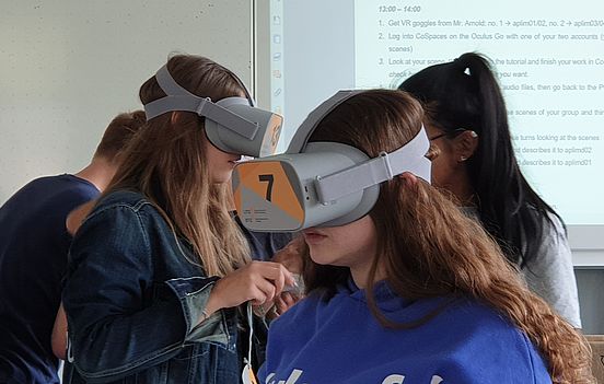 Zum Einsatz kam hier erstmals die VR-Kofferlösung der Stadtmedienzentren Stuttgart und Karlsruhe. Die Koffer mit 16 Oculus Go-Brillen, vier 360-Grad-Kameras, zwei Tablets, einem Klassensatz CoSpaces-Lizenzen und der App EXP360, mit der virtuelle Touren angefertigt und erlebt werden können, sind bei den Stadtmedienzentren ausleihbar.